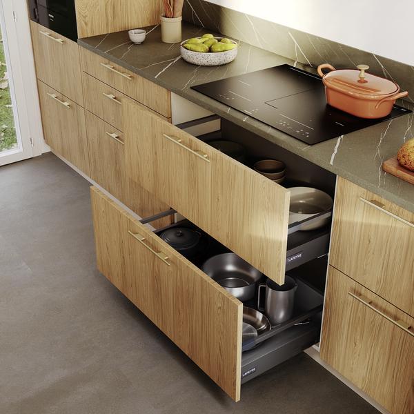 La cuisine CANOPEE propose des décors variés avec un effet bois réaliste pour un rendu chaleureux et tendance.