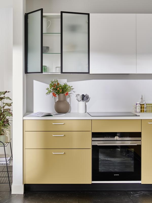 Personnalisez votre cuisine avec nos meubles vitrés disponible en 2 coloris de cadre : noir et alu.