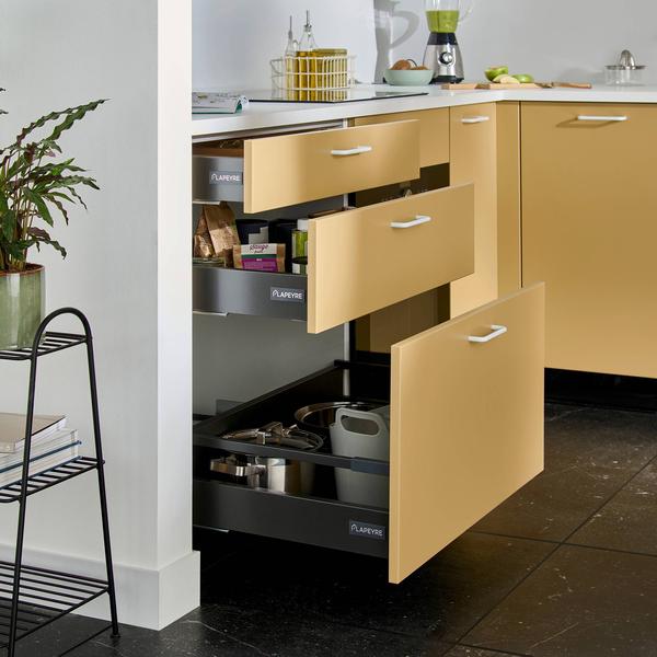 Modèle laqué de haute qualité disponible dans un large choix de finition mattes et brillantes. Pour se rendre compte de la qualité de nos meubles, passez voir nos experts cuisines en magasin.