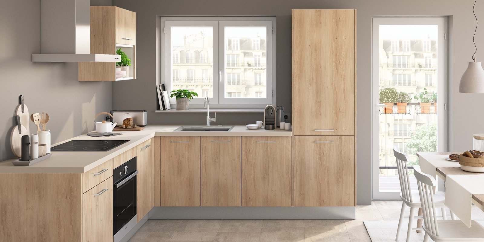 Parfaitement coordonné aux facades de la cuisine pour un effet monochrome. Découvrez nos finitions disponibles avec le modèle ROCHE sur notre configurateur.