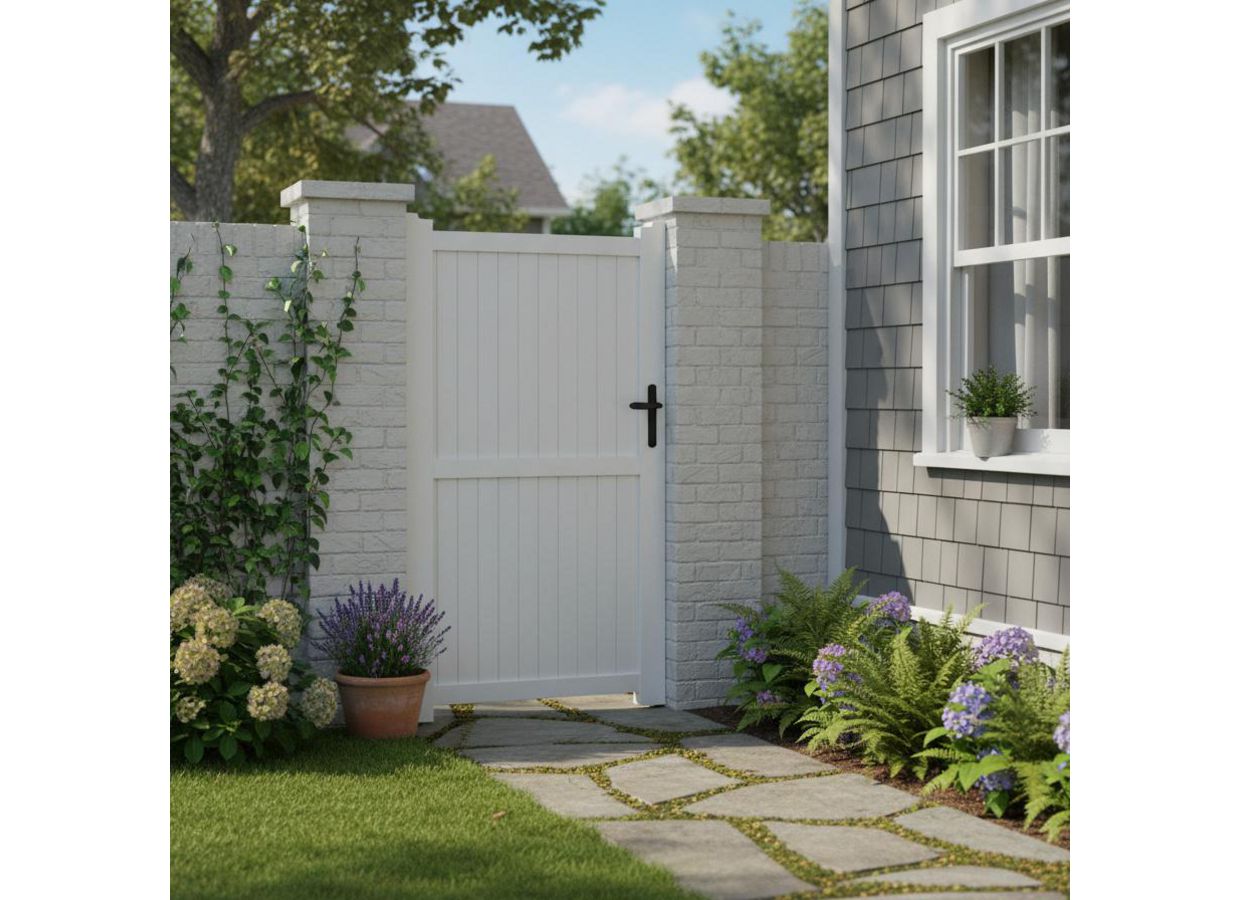 Ce portillon PVC Guernesey s'harmonise au choix avec les portails Touquet ou Guernesey et permet un accès piétonnier facile à votre propriété. 9 teintes sur mesure vous attendent !